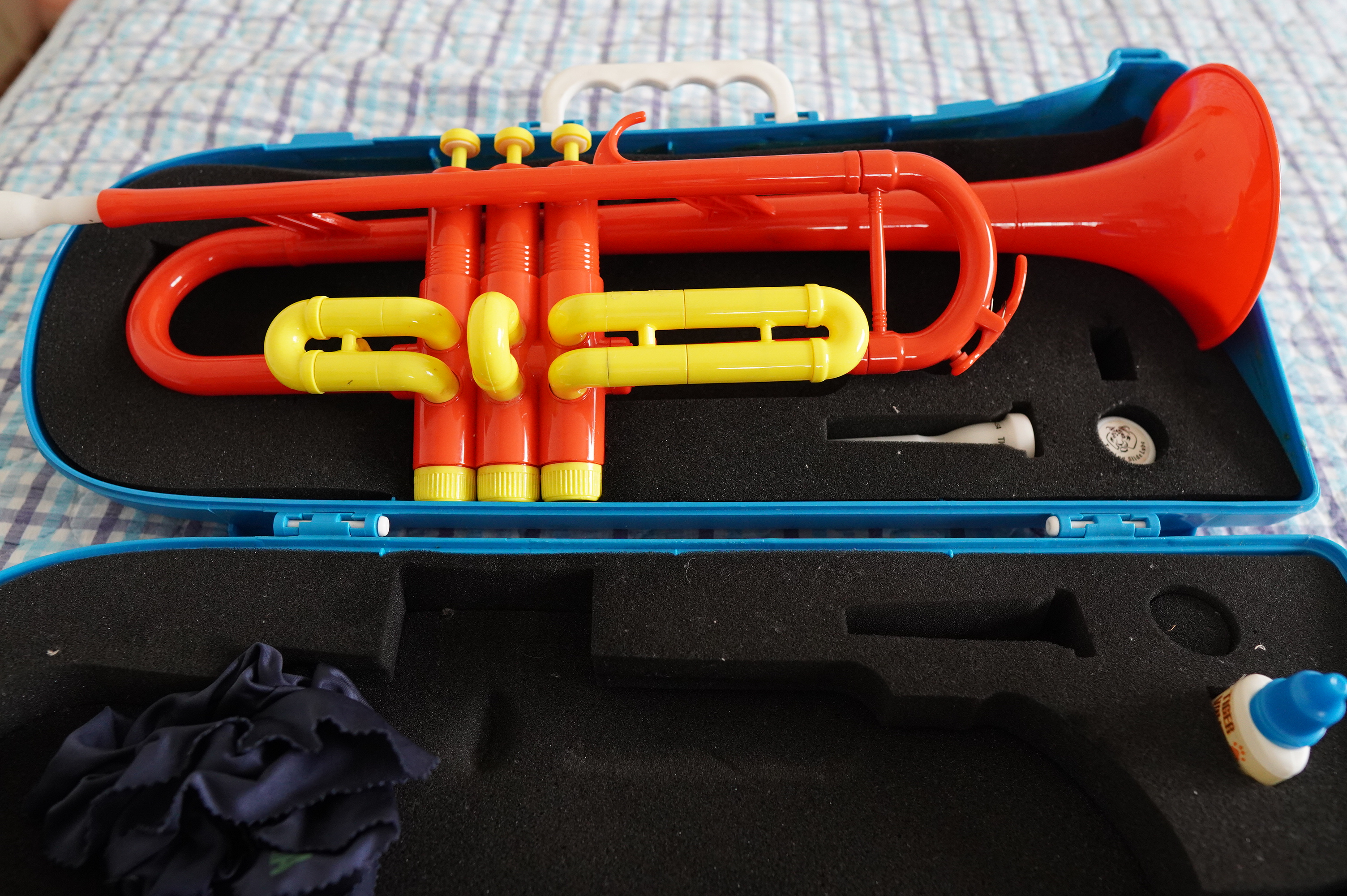 でも、アコースティック(いわゆる普通の)トランペットを使っていた身にとっては、全く吹奏していて迫力に欠ける。又、仲間のサックス迫力に飲み込まれてしまい、自分の楽器音も聞こえない状態。