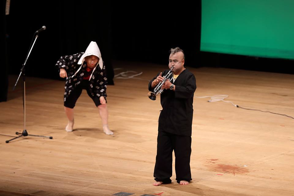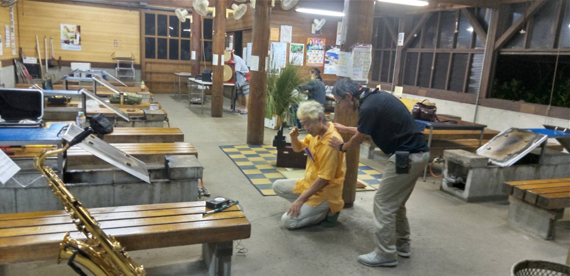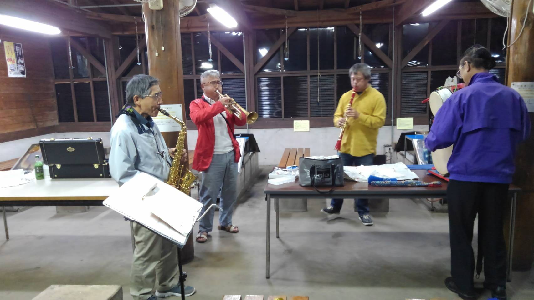 まだプーピーと言ってまともに音が出ない状況(愛論萬蔵)。これから3週間全力で演奏・演技を完成させなければいけません。これが今日お手伝いをしていただいた方の一番のお礼だと思います。