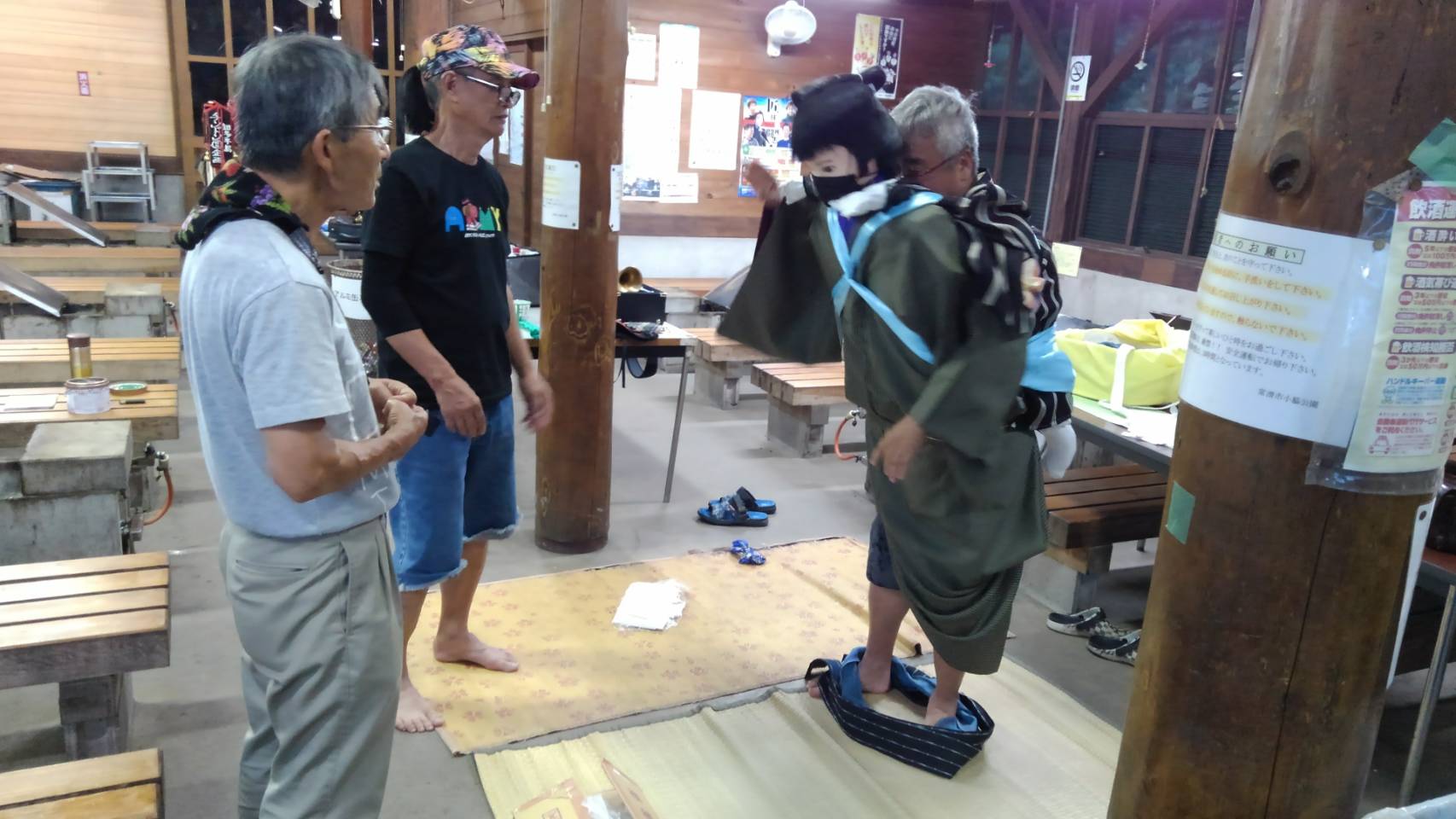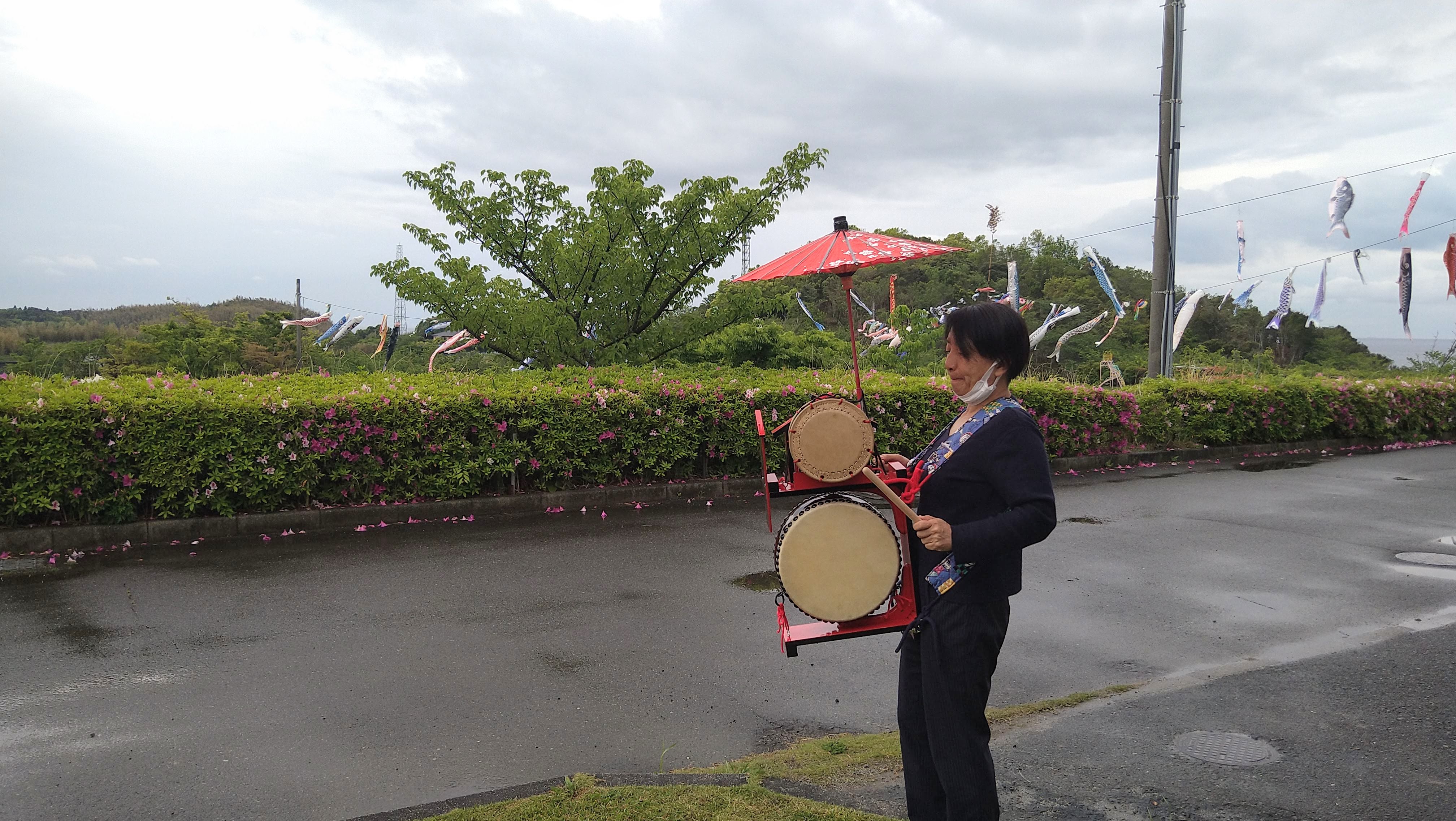 30分の興業後練り歩きを午前午後ともやるのですが、その時「ちんどん屋を死ぬ前に一度見たかった。やっと見ることができ感激した」と東浦町から来所したご婦人がわざわざ私のところまでご挨拶に見え、ありがたい言葉過ぎこちらこそ感激しました。仕事でやっているわけではないので有り難いお言葉にこちらもストレートに感激できるのはボランティアの醍醐味です。