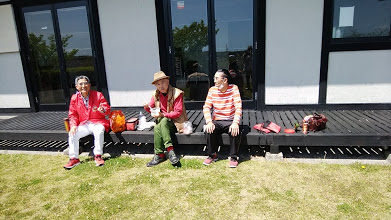 メンバーも誰もいない。後、中村氏が来て、雨も止んだので公園にも数名いるので2人でスタート、彼がチンドン太鼓で私が管楽器。そこでスタート前に音を出していたら。男女2人がニコニコ寄ってくる。トランペットの音がするので来たとの事。すごいフレンドリーな出会い。尋ねたら、男性の方(20代前半か)がプロのドラマーであり、ブルーノート等で演奏していると・・・・。ギョギョ、プロかいな。とても恥ずかしくて演奏できない、・・・・・・・ではなく、チンドン太鼓に興味があるとの事なので、チンドン曲4曲をその場で披露させてもらった。我々2人もプロの前で・・・・今思うとよくやるよな・・・と思う。